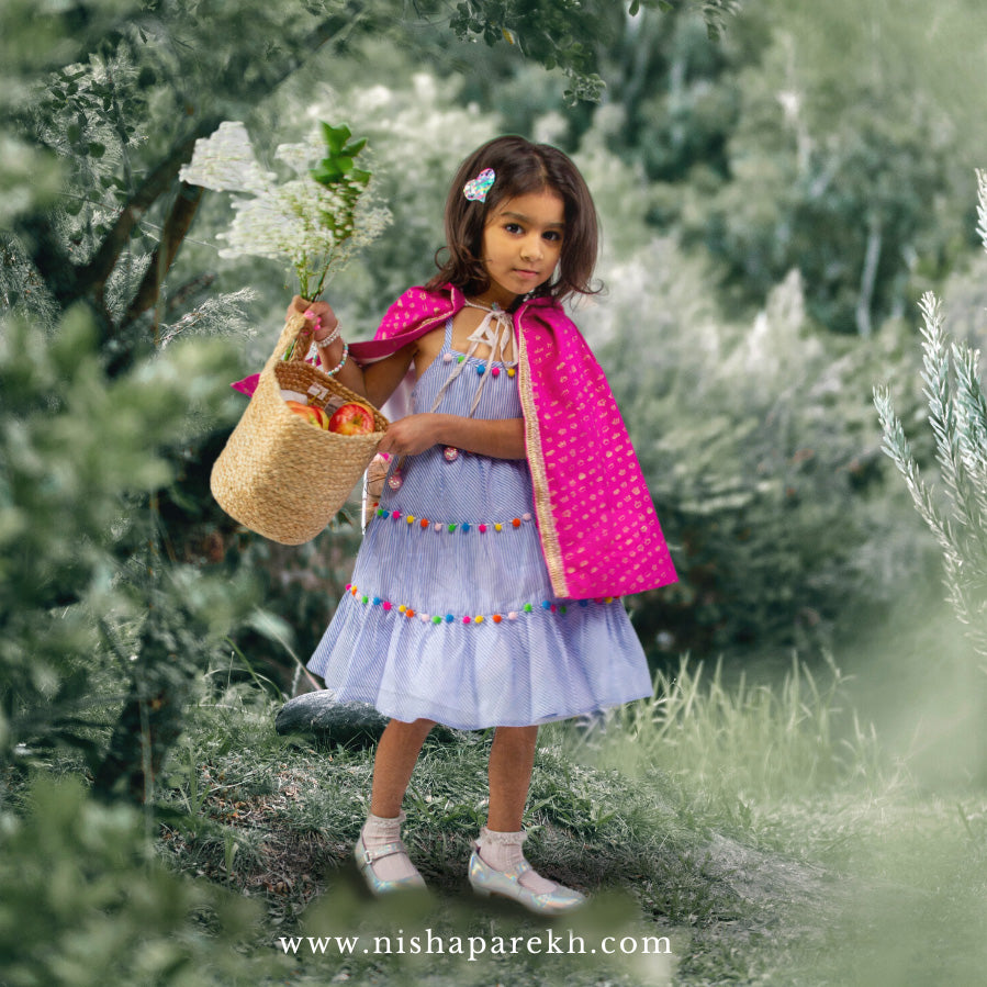 Blending traditional South Asian elements with modern western design, creating a unique style for our Rani's Reign children's cape.